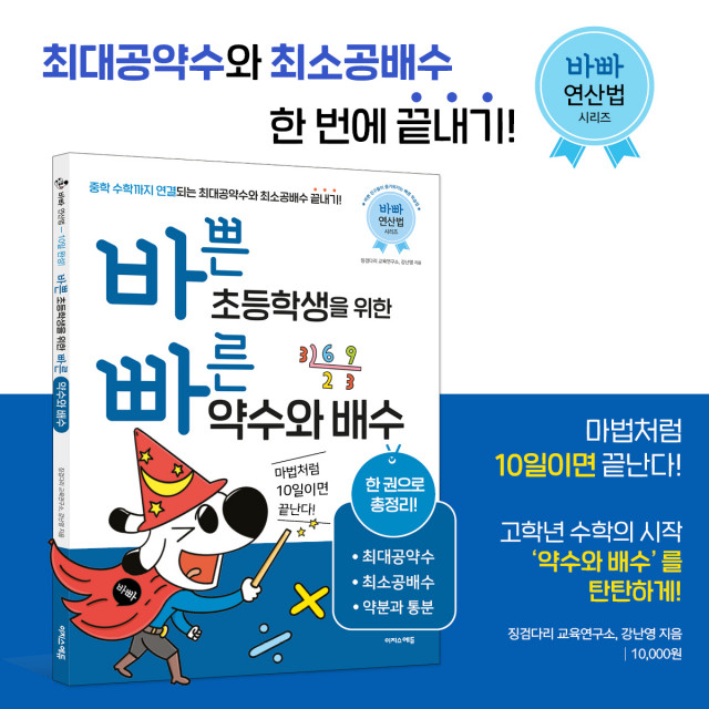 이지스에듀가 ‘바쁜 초등학생을 위한 빠른 약수와 배수(이하 바빠 약수와 배수)’를 출간했다. 고학년 수학의 70%는 분모가 다른 분수를 활용한 문제이다. 해당 계산 문제를 잘 풀기 위해서는 '약수와 배수'의 개념을 완벽하게 이해하고, 최대공약수와 최소공배수의 활용 문제까지 정확하게 풀어낼 수 있어야 한다.