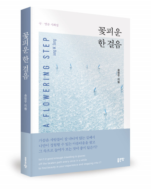좋은땅출판사가 국·영문 시화집 ‘꽃피운 한 걸음’을 출간했다. 이 책은 2020년 문학나눔도서로 선정된 ‘길에 창을 내다’에 이은 송정우 작가의 첫 시화집이다. 송정우 작가는 이 책을 통해 “가끔은 사람들이 잘 다니지 않는 인적이 드문 길에서 나만이 경험할 수 있는 아름다움을 찾고, 그 속으로 들어가 보는 것이 좋지 않은가?”라는 화두를 던지고 94편의 국문과 영문으로 기록한 시와 그림을 실었다.