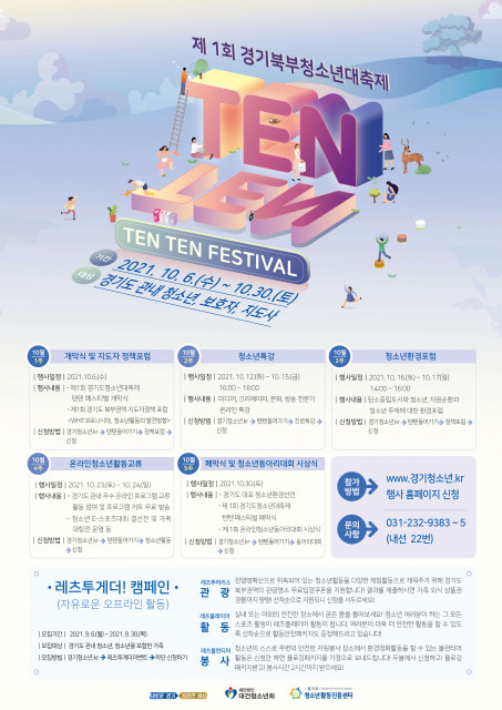 지난 9월 30일(목), 경기도청소년활동진흥센터(선테장 서재범)는 경기도에서 열리는 첫 번째 온라인 청소년 축제 ‘경기도북부청소년대축제 TENTEN 페스티벌(이하 텐텐 페스티벌)’을 개최한다고 알렸다. 이번 텐텐 페스티벌은 10월 한 달간 코로나19 확산 방지 및 안전한 청소년 활동 증진을 위해 다양한 비대면 플랫폼을 기반으로 경기도 북부 지역 청소년 활동에 활력을 불어넣을 예정이다.
