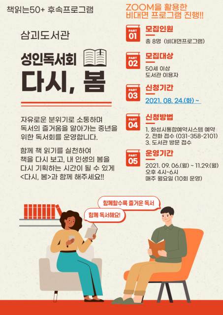 화성시문화재단, 신중년을 위한 ‘책읽는 50+’ 후속 프로그램 참여자 모집