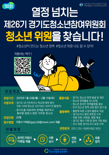 경기도, 2월 15일까지 '제26기 경기도 청소년참여위원회' 청소년 위원 모집