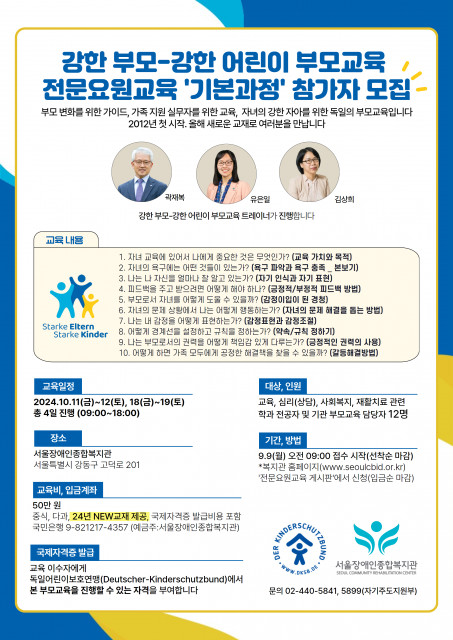 서울장애인종합복지관 ‘강한 부모-강한 어린이’ 부모교육 전문요원교육 기본과정 참가자 모집