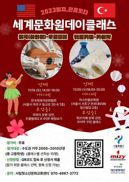 시립청소년문화교류센터(이하 미지센터)는 수도권 내 수능을 마친 수험생들을 포함하여 중학교 및 고등학교 연령대 청소년(2005~2010년생)들을 대상으로 체험형 해외문화에 대한 이해와 세계시민교육 프로그램인 '미지, 판을 잇다'를 진행한다고 밝혔다.
