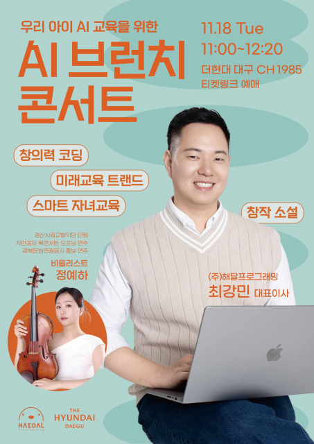 더현대대구 CH1985(문화센터)가 초, 중등 학부모를 위한 특별 강연 ‘AI 브런치 콘서트’를 개최한다고 밝혔다. 이번 콘서트는 복잡한 AI 기술을 누구나 쉽고 빠르게 이해하며 자녀 교육에 효과적으로 활용할 수 있는 방법을 제시하고자 마련됐다.