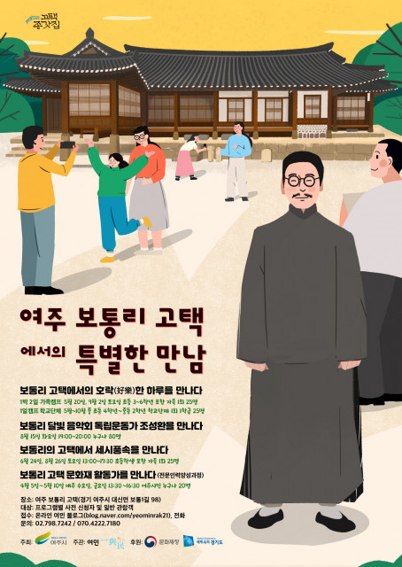 8월 31일(목), 여주시(시장 이충우)가 다가오는 9월 2일(토)부터 3일(일)까지 1박 2일간 경기도 여주시에 위치한 독립운동가 청사 조성환 선생 생가에서 오감만족 숙박·체류 프로그램 ‘여주 보통리 고택에서 호락(好樂)한 하루를 만나다’를 개최한다고 전했다.