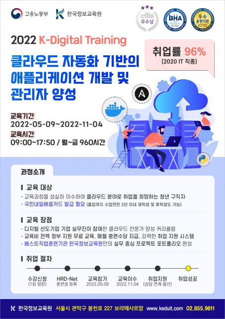 한국정보교육원, '클라우드 자동화 기반의 애플리케이션 개발 및 관리자 양성 과정' 4기 교육생 모집