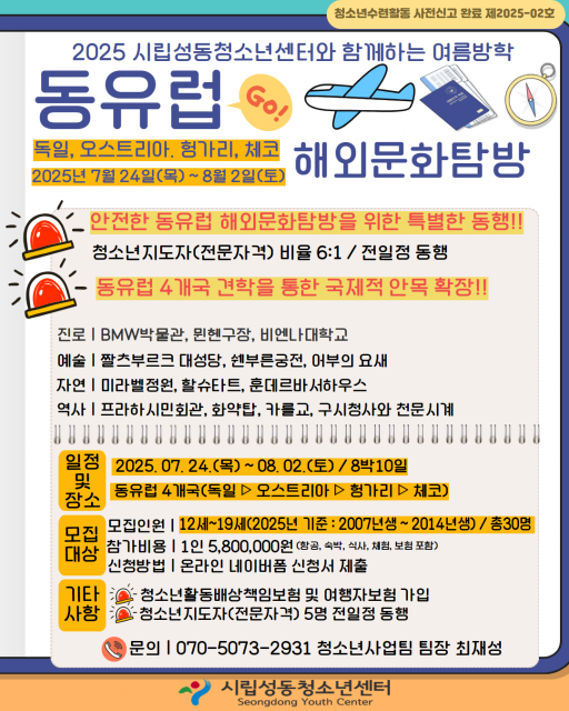 시립성동청소년센터, 여름방학 맞이 청소년 대상 '동유럽 해외문화 탐방 프로그램' 본격 추진
