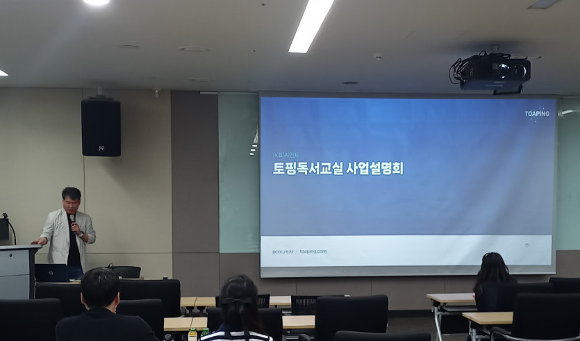지난 6월 26일(수), 주식회사 피씨엔씨(대표 김덕기, 이하 피씨엔씨)는 판교에 위치한 경기스타트업캠퍼스 세미나실에서 학생들의 문해력 성장을 위한 토핑독서교실 사업설명회를 개최했다고 밝혔다. 토핑독서교실은 피씨엔씨에서 주관하는 토핑독서 서비스 운영을 중심으로 KBS학습문해력 및 책과함께, KBS한국어능력시험의 지정접수처이자 지정고사장 역할을 하게 되며, 이를 기반으로 학원 내에서 접수와 평가를 실시할 수 있도록 자격이 부여된다.