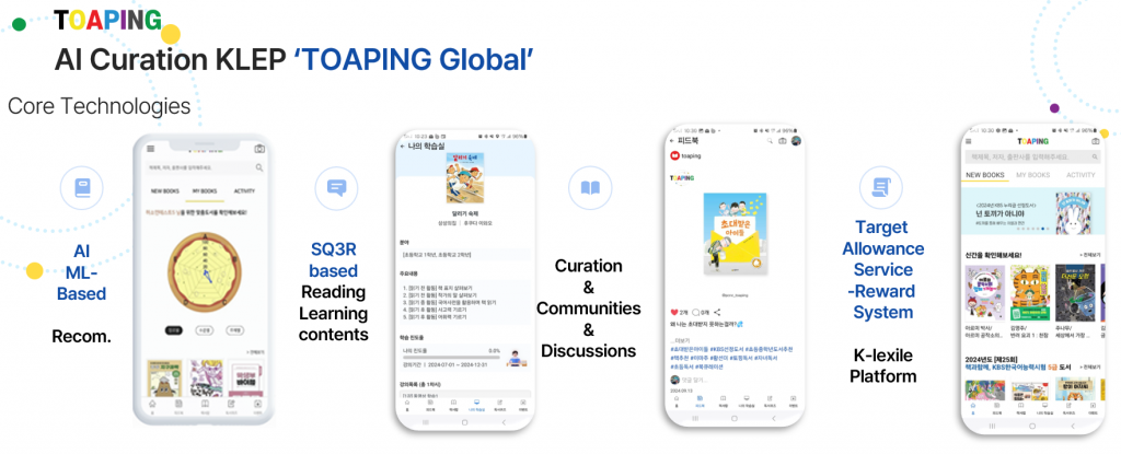 To address this, TOAPING Service offers a reading-centered Korean language education. Through Korean books (paper or e-books), study content, and AI-curated books and communities, students continuously encounter Korean and gain a deeper understanding of Korean culture.