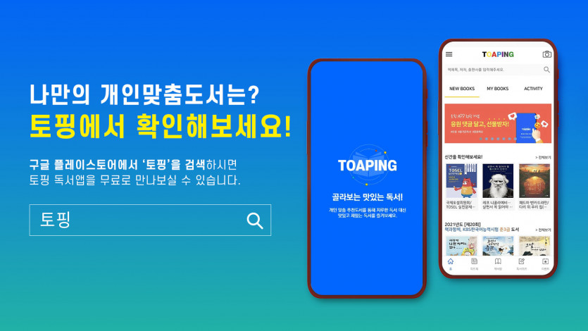 2월 8일(화), ㈜피씨엔씨(대표 김덕기)는 개인 맞춤형 도서 추천 및 커뮤니티를 위한 ‘토핑’ 앱을 구글에 출시했다고 밝혔다. 이번에 새롭게 출시된 앱은 관심사와 관련 독후활동 등을 기반으로 하여 나만의 개인맞춤 추천도서를 확인할 수 있다는 것이 큰 특징이다. 기존의 학년별 필독서 중심의 독서에서 벗어난 개인별 맞춤 서비스를 통해 보다 즐겁고, 재미있게 골라보는 독서를 지원한다.