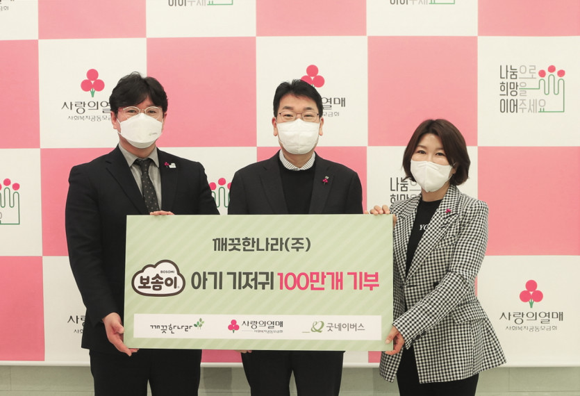 지난 1월 19일(수), 사랑의열매 사회복지공동모금회(회장 조흥식)는 종합제지기업 깨끗한나라(주)(대표이사 최현수)가 장기화되고 있는 코로나19 사태로 인해 어려움을 겪고 있는 이웃들을 돕고자 3억 원 상당의 기저귀 100만 개를 기부했다고 밝혔다.