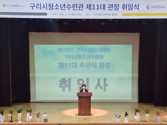 지난 1월 19일(수), 구리시청소년재단(이사장 안승남)이 14일 청소년수련관 1층 공연장에서 구리시청소년수련관 제11대 관장 취임식을 개최했다고 밝혔다. 본 취임식은 안승남 구리시장을 비롯해 구리시의회 임연옥 부의장, 임창열, 백현종 경기도의회의원 및 관내 기관 단체, 청소년, 학부모 등이 참석한 가운데 진행되었으며 코로나19 확산 방지를 위해 방역 지침을 철저히 준수하였다.