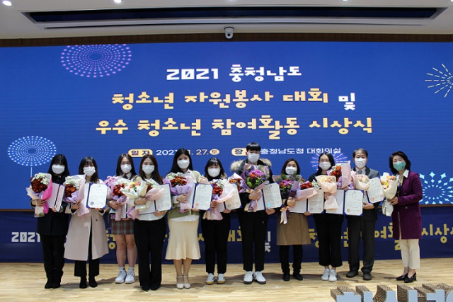 지난 11월 29일(월), 충청남도청소년진흥원(원장 박영의)이 충청남도청에서 ‘2021 충청남도 청소년 자원봉사 대회 및 우수 청소년 참여활동 시상식’을 개최하여 도내 청소년 자원봉사에 대한 관심 제고 및 참여 활성화에 기여한 청소년 및 동아리를 선발해 포상하는 자리를 가졌다.