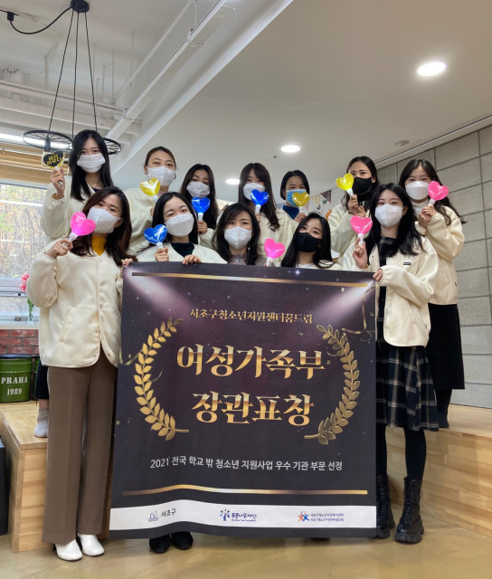 서초구 청소년지원센터 꿈드림(센터장 양미라)은 ‘2021 전국 학교 밖 청소년 지원 사업’ 최우수 기관으로 선정돼 여성가족부 장관 표창을 수상했다. 또한 ‘2021 서울시 학교 밖 청소년 지원사업’에서도 최우수 기관으로 선정돼 서울특별시장상을 받는 영광을 얻었다.