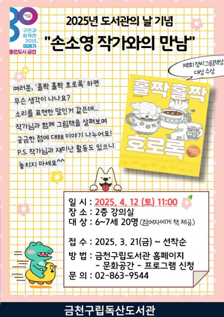 금천구립독산도서관, 4월 12일 도서관의 날 기념 ‘손소영 작가와의 만남’ 개최