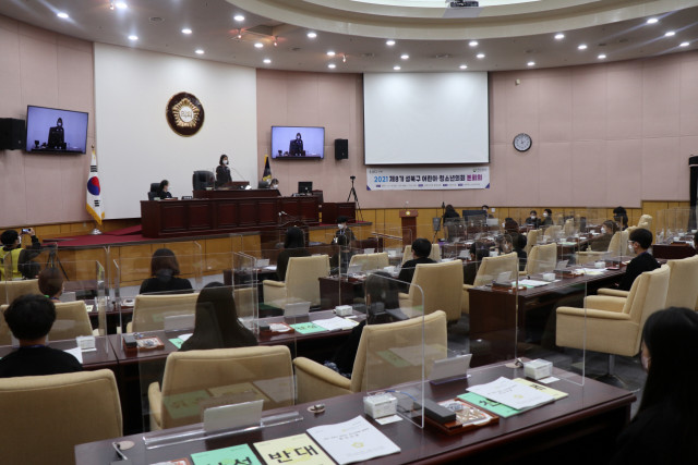 성북구(구청장 이승로)는 지난 10월 30일(토) 성북구의회 본회장에서 '제8기 성북구 어린이·청소년의회'를 개최했다. 어린이와 청소년의 참여권을 보장하는 본회의는 64명 중 49명의 참석으로 성원 되었으며 국민대학교 법학과 재학생들이 보좌관을 맡아 의원들과 함께 활동을 진행했다.