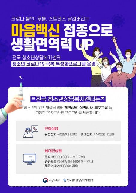 지난 9월 9일(목), 강남구청소년상담복지센터(센터장 김형래)는 코로나19 4차 유행 및 장기화 사태로 인해 몸과 마음이 지쳐가고 있는 청소년들의 심리건강을 증진시키고 일상으로의 복귀를 돕고자 '2021년 2학기 대비 상담주간'을 운영한다고 밝혔다.