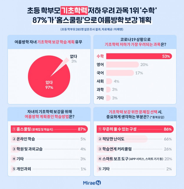미래엔, 초등 학부모 대상 방학 기간 자녀 학습 계획에 대한 온라인 설문조사 결과 발표 및 이벤트 진행