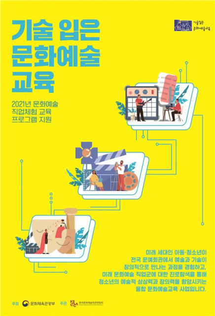 문화체육관광부(장관 황희, 이하 문체부)가 주최하고 한국문화예술회관연합회(회장 이승정, 이하 코카카)가 주관하는 ‘문화예술 직업체험 교육프로그램 지원’ 사업(이하 기술 입은 문화예술교육)이 4차 산업혁명에 발맞춘 예술·기술 융복합 청소년 교육을 위해 전국 31개 문예회관에서 본격 시작된다.