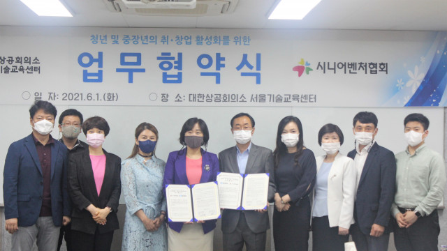 지난 6월 1일(화), 대한상공회의소 서울기술교육센터와 시니어벤처협회는 서울 화곡동에 위치한 대한상공회의소 서울기술교육센터에서 청년 및 중장년의 취·창업 지원 협력을 위한 업무협약을 체결했다. 이날 협약식은 대한상공회의소 서울기술교육센터의 이무상 센터장, 최민아 능력개발처장, 박은경 HR혁신사업팀장과 시니어벤처협회 신향숙 회장, 김미양 부회장, 이규성 사무총장, 노은희 이사, 황정현 사무국장이 참여한 가운데 진행됐다.