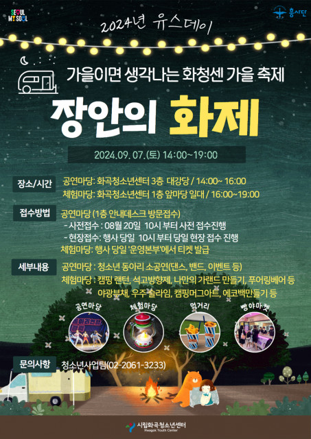 시립화곡청소년센터(관장 정상영)는 다가오는 9월 7일(토) 청소년 및 지역주민을 대상으로 센터 앞마당, 대강당에서 청소년들이 직접 기획·운영하는 청소년축제 '장안의 화제'와 함께 청소년 동아리 소공연 ‘유스테이지’를 개최한다고 밝혔다.