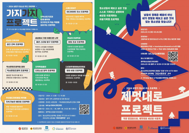 광주청소년삶디자인센터, '2024 상반기 청소년 주도 프로젝트' 참여자 모집