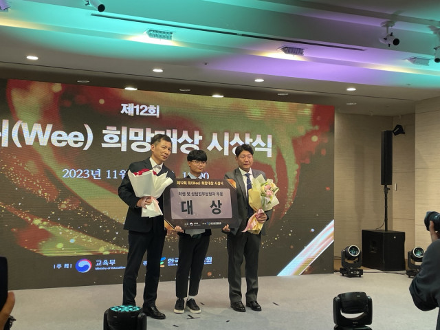 충청북도교육청 형석중학교(교장 이덕순) 정세환 교사와 형석중 3학년 학생이 ‘제12회 위(Wee) 희망대상’ 학생·상담업무담당자 부문에서 ‘대상’(부총리겸 교육부장관상)을 각각 수상했다고 밝혔다. 본 시상식은 지난 11월 24일(금) 오후 2시에 서울에 위치한 로얄호텔에서 진행됐다.