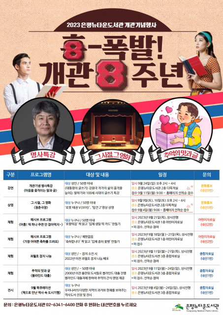 구립은평뉴타운도서관, '흥-폭발! 개관 8주년' 독서문화 행사 운영