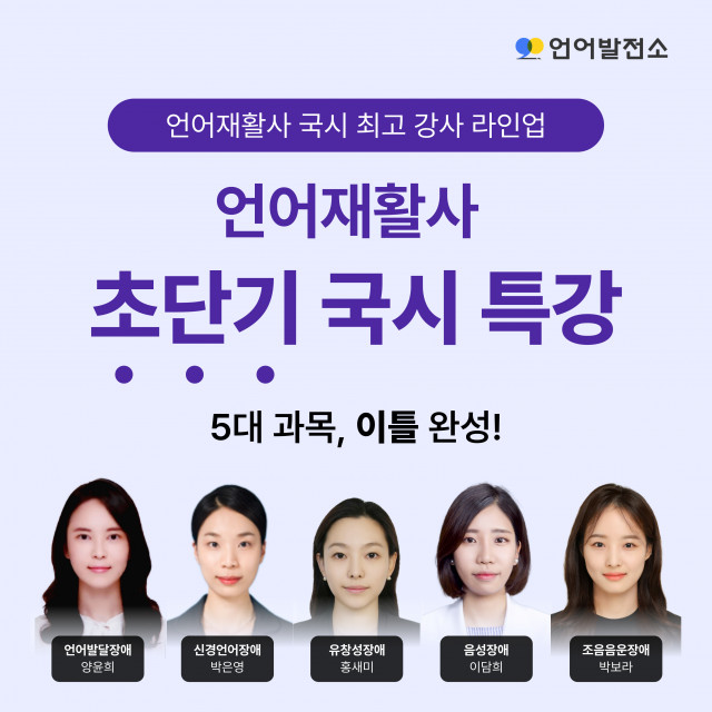 화상 언어재활 플랫폼을 운영하고 있는 언어발전소(대표 윤슬기)가 2023년 12월 2일(토)에 시행 예정인 제12회 언어재활사 국가고시 시험을 준비하는 국시생들을 지원하고자 9월 16일, 17일 양일간 언어재활사 국가고시 특강을 개최한다고 전했다.