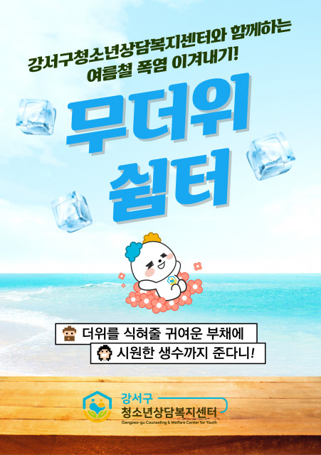 서울시 강서구청소년상담복지센터(센터장 오현주)는 기록적인 폭염이 계속되는 가운데 센터를 이용하는 청소년들 및 인근 주민들의 건강과 안전을 지키고자 무더위 쉼터를 운영한다고 전했다. 해당 쉼터는 무더위를 피해 잠시 쉬어갈 수 있도록 1층 휴게공간에 마련되었으며, 냉방기 가동과 함께 얼음물과 부채가 비치되어 있다. 또한 월요일부터 토요일까지 오전 9시부터 오후 6시까지 이용이 가능하다.