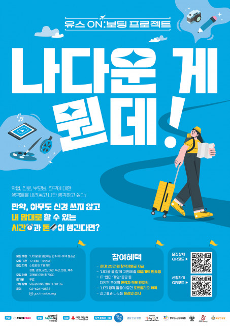 유스보이스(대표 김재순0가 청소년을 위한 미디어 교육 '유스 온보딩 프로젝트'를 진행한다고 전했다. 우미희망재단이 후원하고, 사회복지공동모금회가 지원하는 유스 온보딩 프로젝트는 청소년이 스스로 '나다움'에 대해 발견하고 이를 미디어로 표현할 수 있도록 지원 및 교육하는 프로그램이다.