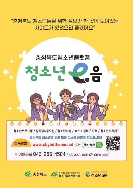충북청소년종합진흥원(원장 홍상표)에서 운영하고 있는 '청소년e음'이 7월을 맞이해 청소년이 뜻깊은 여름방학을 보낼 수 있도록 여름방학 문화교실(제천), 청소년자원봉사학교(음성) 등 도내 각 지역에서 시행되는 다양한 프로그램 정보를 제공한다고 밝혔다.