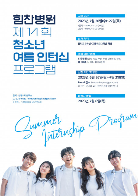 힘찬병원, 의료현장을 직접 체험해볼 수 있는 '제14회 청소년 여름 인턴십 프로그램' 참가자 모집