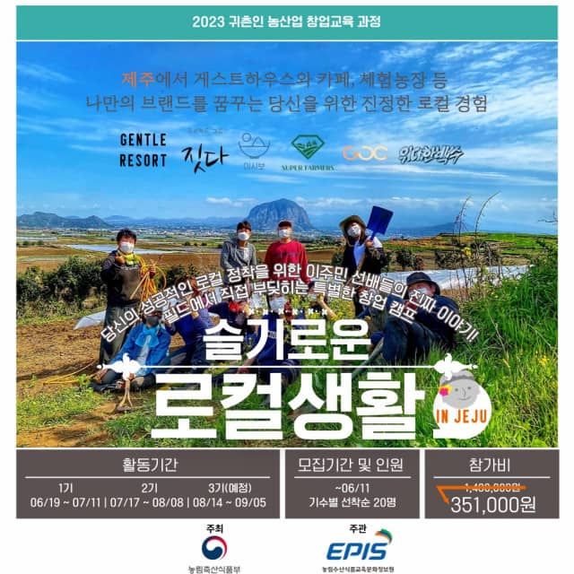 글로벌제주문화협동조합(GJC)이 '2023년 청년 특화형 귀촌인 농산업 창업교육기관'으로 선정되어 제주 로컬 청년 창업캠프 '슬기로운 로컬생활'의 참여 교육생을 모집한다고 밝혔다. 이번 캠프는 농림축산식품부(이하 농림부)와 농림수산식품교육문화정보원(이하 농정원)이 주최·주관하는 사업으로, 농산업 창업을 희망하는 청년 귀촌인에게 로컬 비즈니스 환경을 미리 경험해볼 수 있는 기회를 제공한다.