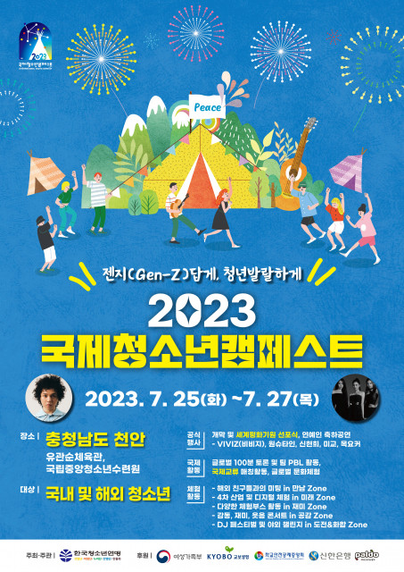 7월 25일(화)부터 7월 27일(목)까지 3일간 한국청소년연맹(총재 임호영)이 주최하고 여성가족부와 교보생명, 학교안전공제중앙회, 신한은행, 팔도, 풀무원이 후원하는 ‘2023 국제청소년캠페스트(이하 캠페스트)’가 충청남도 천안에서 개최된다. 이번 캠페스트는 캠핑(Camp)과 놀이가 결합 된 축제(Festival)의 합성어를 의미하며, 국내 최대 규모의 청소년 캠핑 축제로 1983년 덕유산 야영장으로 시작해 올해 19회를 맞이했다.