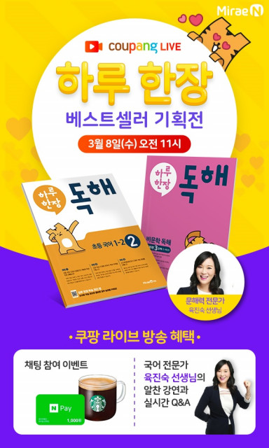 미래엔, 쿠팡 라이브에서 공부습관을 키울 수 있는 ‘하루 한장’ 베스트셀러 기획전 진행