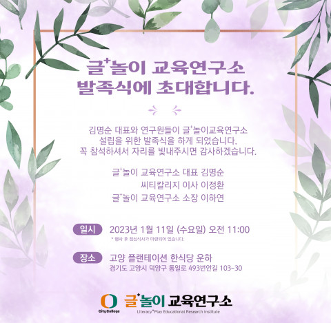 씨티칼리지 글+놀이 교육연구소, 1월 11일 고양플랜테이션에서 발족식 개최