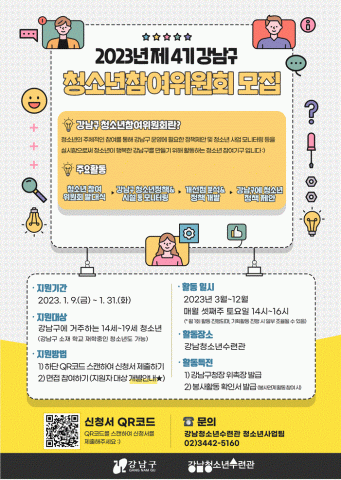 청소년이 행복한 강남구를 만들기 위한 '강남구 청소년참여위원회' 제4기 위원 모집