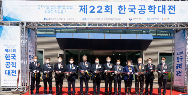 지난 9월 21일(수), 한국공학대학교(총장 박건수, 이하 한국공대)가 주관하는 '제22회 한국공학대전'이 개막식을 시작으로 양일간 종합전시관(한국공대 체육관)에서 개최됐다. 우선 개막식은 한국공대 박건수 총장과 황수성 산업통상자원부 실장을 비롯해 임병택 시흥시장, 송미희 시흥시의회 의장, 이낙규 한국생산기술연구원 원장, 성낙헌 시흥상공회의소 회장 겸 한국공대 가족회사 대표, 유진수 ITP 총동문회장, 이상기 시흥교육지원청 교육장 등이 참석한 가운데 진행되었다.