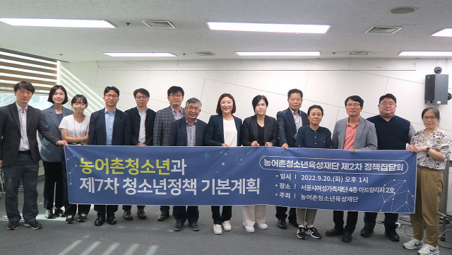 지난 9월 20일(화), 농어촌청소년육성재단(이사장 박성자)은 농어촌 및 청소년 전문가들과 함께 서울시여성가족재단 아트컬리지2호실에서 '농어촌청소년과 제7차 청소년정책 기본계획'을 주제로 정책집담회를 개최했다. 이번 집담회는 제7차 청소년정책 기본계획 수립을 앞두고 농어촌지역 청소년을 위한 정책 방향에 대해 논의하고 이에 대한 체계적인 현장활동 지원 방안을 모색하고자 진행됐다.