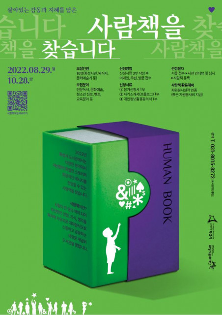 화성시문화재단(대표이사 김종대)에서 이번 2022년 신규 사업으로 '사람책 도서관'을 운영한다. '사람책 도서관'은 사람이 한 권의 책이 되어 자신만의 경험과 지식, 생각을 도서관 이용자와 대화 형식을 통해 소통하고 공유하는 사업으로 도서관이 제공하는 정보 자료의 범주를 '책'에서 '사람'으로 확장해 도서관 서비스를 다양화하고자 한다.