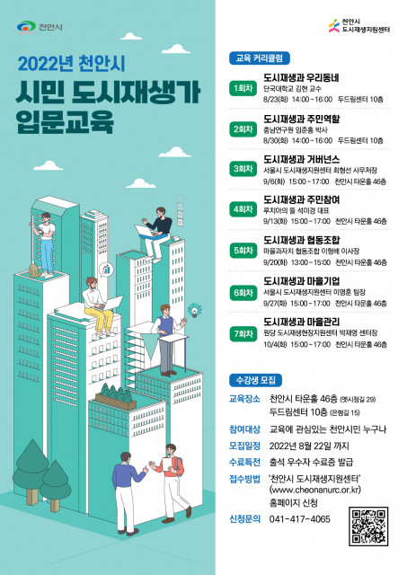 천안시 도시재생지원센터, 8월 22일까지 ‘시민 도시재생가 입문 교육’ 수강생 모집
