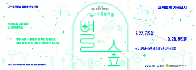 지난 7월 18일(월), 신구대학교식물원(권영한 원장)이 다가오는 7월 22일부터 8월 28일까지 '식물원 미술놀이 뜰 별숲' 교육 연계 기획 전시를 진행한다고 밝혔다. 이번 기획전은 경기도청과 성남시청이 지원하는 지역문화예술 플랫폼 육성 사업인 ‘2022 우리 아이와 함께하는 식물원 미술놀이 뜰 별숲’ 프로그램의 결과물로서 아이와 어른이 함께 식물원과 밤하늘을 관찰하고, 상상놀이를 하며 그림을 그리는 수업이 진행된다.