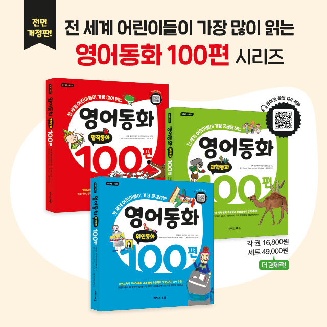 이지스에듀가 오랜 시간 독자의 사랑을 꾸준히 받아 온 베스트셀러, ‘영어동화 100편’ 시리즈를 바쁜 초등학생을 위한 전면 개정판을 출간했다. '영어동화 100편' 시리즈는 전 세계 어린이들이 가장 많이 읽는 명작동화, 과학동화, 위인동화 전 3권 구성으로, 각 100편씩 총 300편의 하이라이트 장면을 영어로 읽고 들을 수 있다.