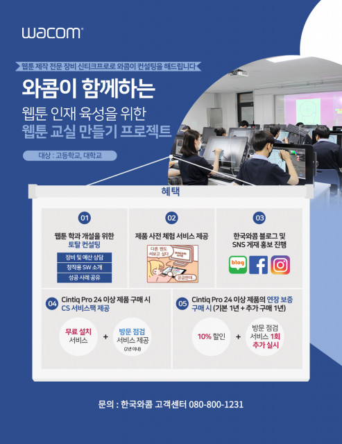 한국와콤, 전국 고등학교·대학교 대상으로 토탈 컨설팅 ‘웹툰 교실 만들기 프로젝트’ 실시