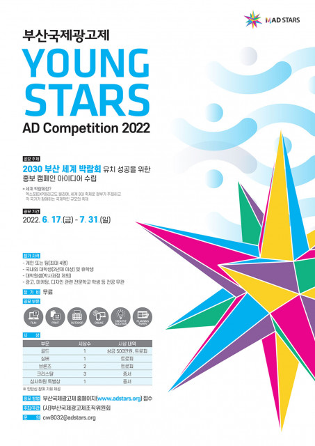 부산국제광고제가 국내외 대학생 및 5년 차 이하 주니어 광고인들을 대상으로 ‘2030 부산세계박람회’ 유치 성공을 위한 홍보 아이디어 공모전을 개최한다. '2022 부산국제광고제'는 올해 전 세계 일반인들을 대상으로 ‘2030 부산세계박람회 유치를 위한 홍보 캠페인’이라는 스페셜 출품 카테고리를 신설했으며, 이와 함께 '2030 부산세계박람회 유치 성공을 위한 홍보 캠페인 아이디어 수립'이라는 주제를 기반으로 전 세계 젊은 아이디어 모집에 나선다.