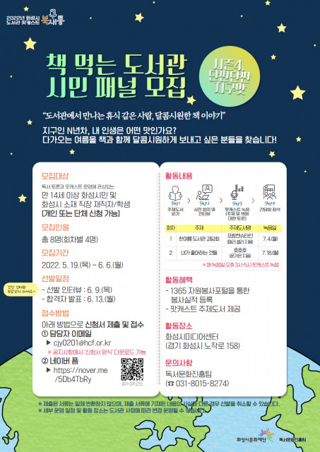 화성시문화재단, 2022년 도서관 팟캐스트 '북새통' 시즌4 '단짠단짠 지구맛' 참여 시민 패널 모집