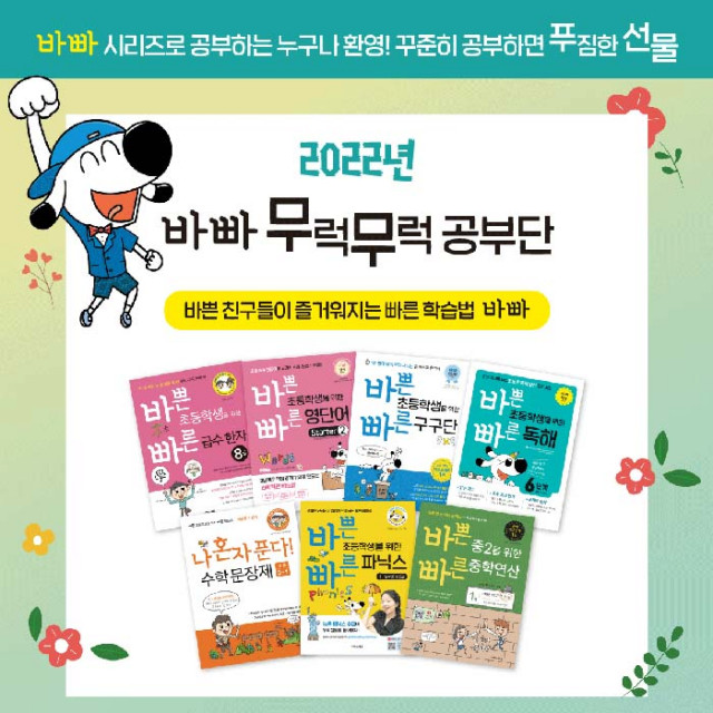 교육 전문 출판 브랜드 이지스에듀가 가정 학습 지원 프로그램 '바빠 무럭무럭 공부단'을 5월 2일(월)까지 모집한다. 이번 공부단은 ‘바쁜 초등학생을 위한 빠른 구구단’, ‘바쁜 3,4학년을 위한 빠른 나눗셈’, ‘바쁜 초등학생을 위한 빠른 독해’ 등 바빠 시리즈로 공부를 하고 있는 누구나 참여가 가능하다.