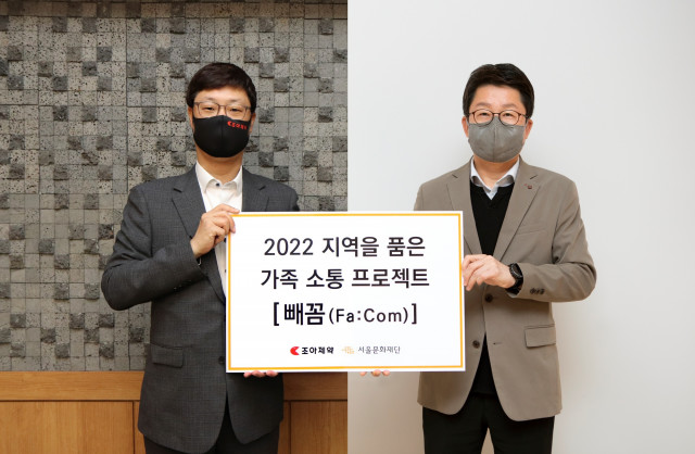 4월 14일(목), 서울문화재단(대표이사 이창기)이 조아제약(대표이사 조성환·조성배)과 함께 서울에 거주하는 가족 대상의 참여형 예술교육 사업 '2022 지역을 품은 가족 소통 프로젝트 [빼꼼(Fa:Com)]'을 진행한다고 밝혔다. 이번 프로젝트 추진을 위해 조아제약은 서울문화재단에 기부금을 후원한다. 사업 추진 발표 및 기부금 전달식은 코로나19 확산 방지를 위해 비대면으로 진행됐다.