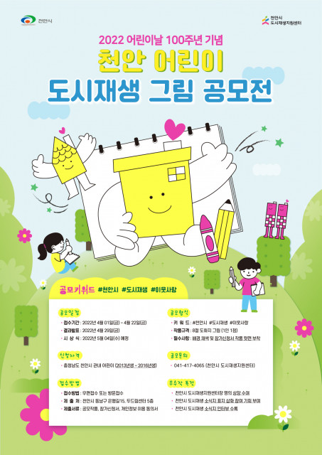 천안시 도시재생지원센터, 어린이날 100주년 기념 4월 22일까지 ‘천안 어린이 도시재생 그림 공모전’ 개최